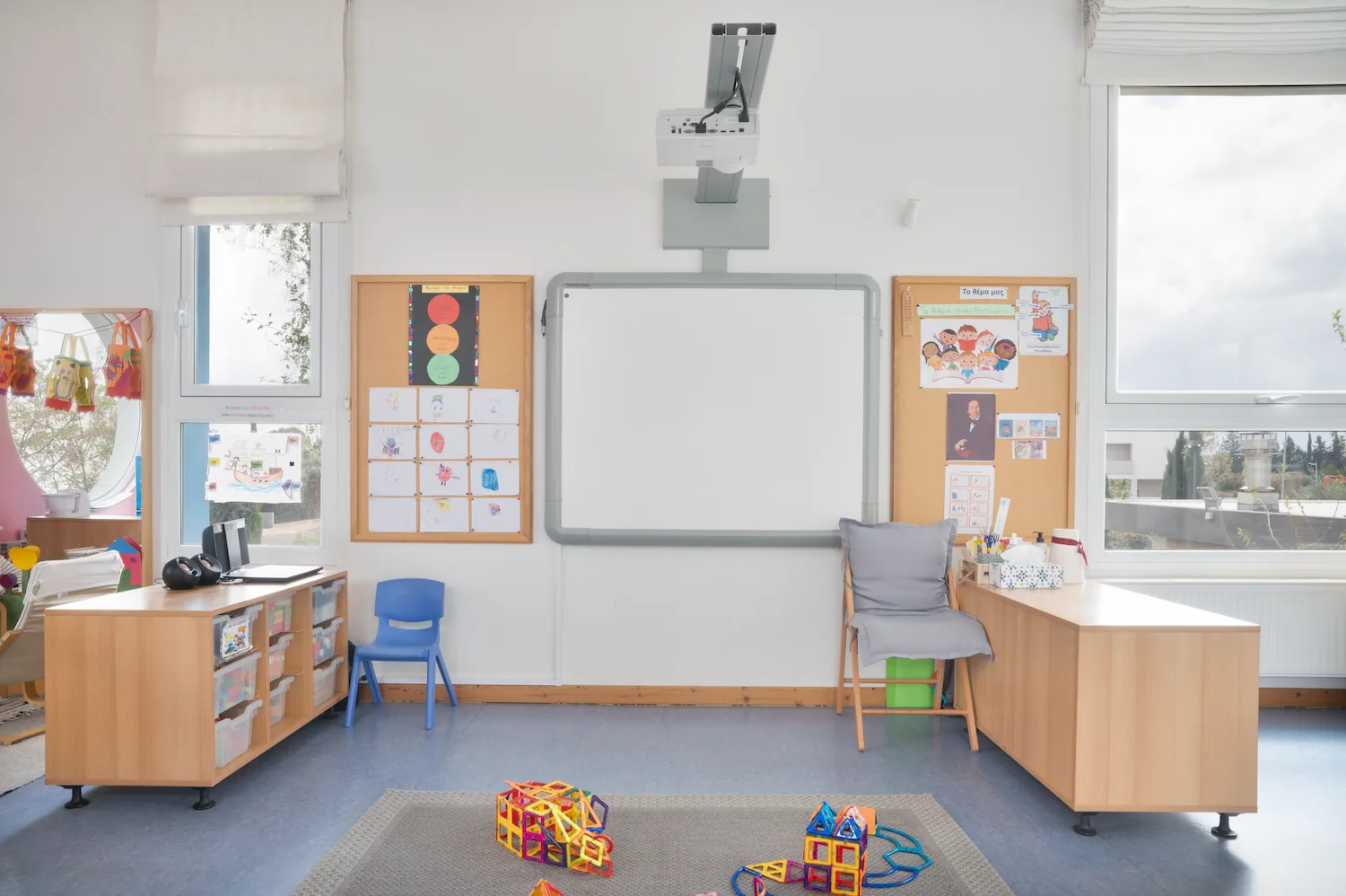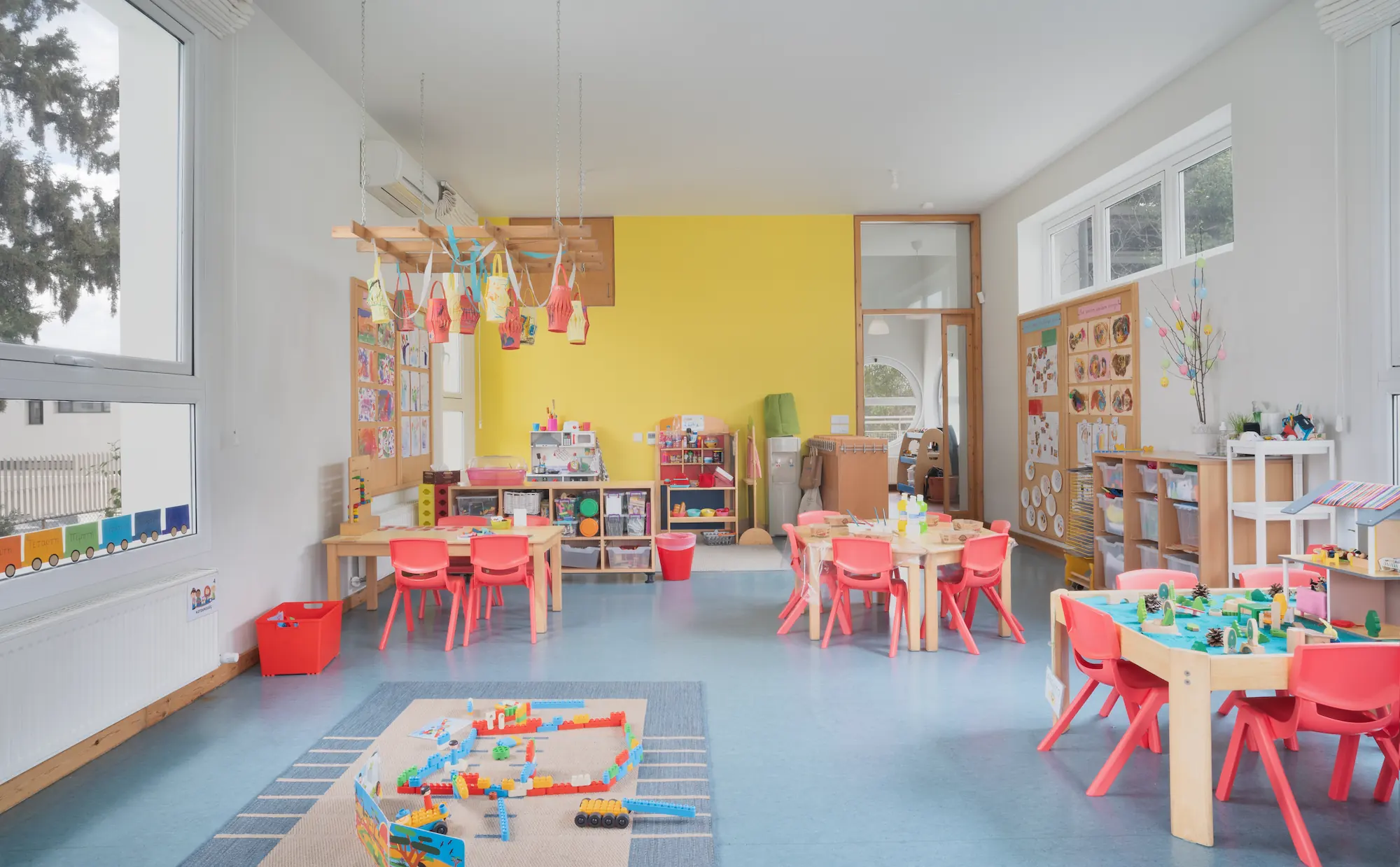Οι τάξεις είναι οργανωμένες σε ‘’γωνιές’’ (κουκλόσπιτο, μπακάλικο, βιβλιοθήκη, γωνιά μεταμφίεσης, κουκλοθέατρο), οι οποίες μεταμορφώνονται ανάλογα με το θέμα της εβδομάδας. Στην τάξη της Προδημοτικής (ομάδα παιδιών 5-6 χρονών) υπάρχει επίσης διαδραστικός πίνακας, τον οποίο χρησιμοποιούν όλες οι ομάδες εκ περιτροπής. Το υλικό κάθε τάξης (κατασκευαστικά παιχνίδια, παιδαγωγικά παιχνίδια συμπεριλαμβανομένου παζλ, ασκήσεις κ.ά., υλικό φανταστικού παιχνιδιού κλπ) είναι ανάλογο με τις ικανότητες αλλά και τις ανάγκες κάθε ηλικίας.