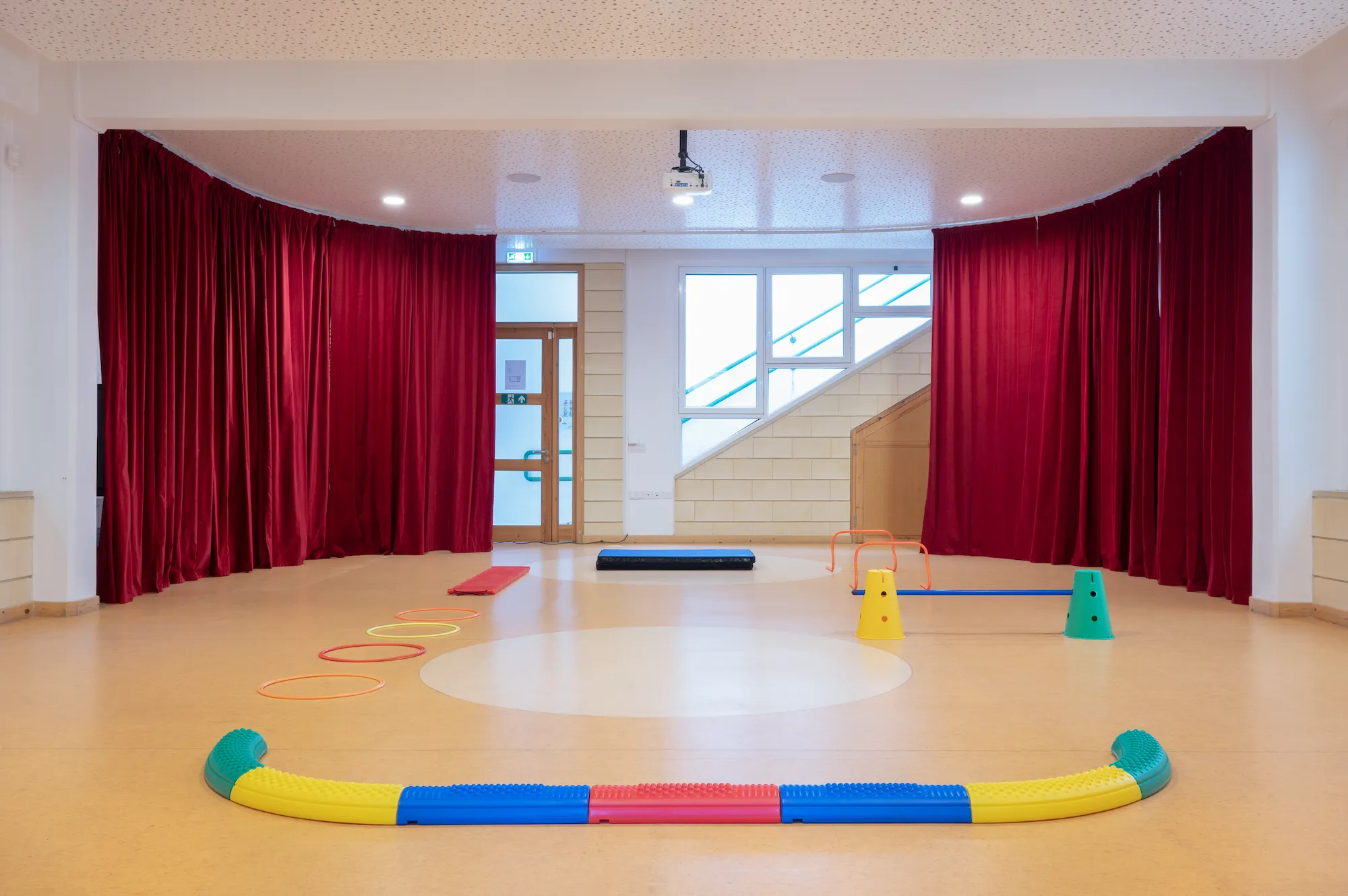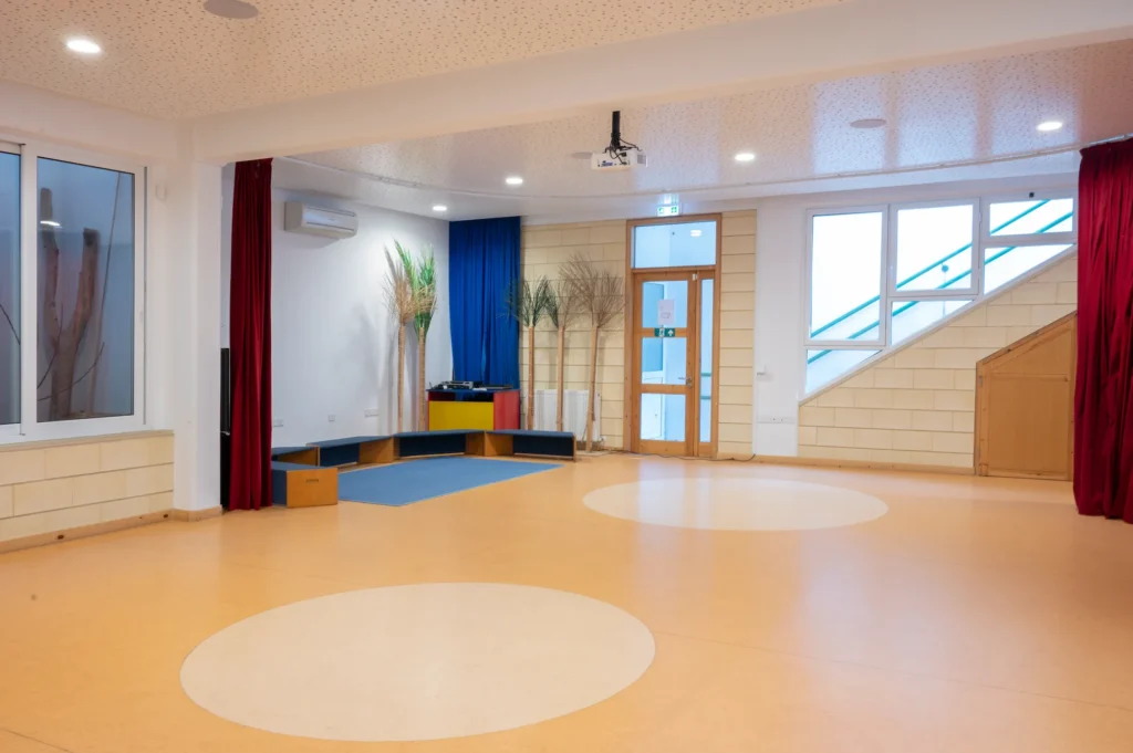 Στο υπόγειο έχει διαμορφωθεί μια Αίθουσα Πολλαπλών Χρήσεων. Δύο φωταγωγοί προσφέρουν ένα γλυκό φυσικό φως και φυσικό εξαερισμό, στοιχεία που συμβάλλουν στη δημιουργία μιας ήρεμης ατμόσφαιρας για τις δραστηριότητες των παιδιών. Στην αίθουσα αυτή, τα παιδιά απολαμβάνουν δραστηριότητες γυμναστικής, χορού, μουσικής και κίνησης και θεατρικού παιχνιδιού. Τα χρώματα στο υπόγειο είναι πιο ήπια, αφού σε ένα μέρος αυτού ξεκουράζονται το μεσημέρι τα παιδιά που θα μείνουν στο Νηπιαγωγείο μέχρι το απόγευμα. Τέλος, στον χώρο αυτό οργανώνονται εκδηλώσεις / συζητήσεις / διαλέξεις με τους γονείς των παιδιών αλλά και τη συμμετοχή Ειδικών Επιστημών.