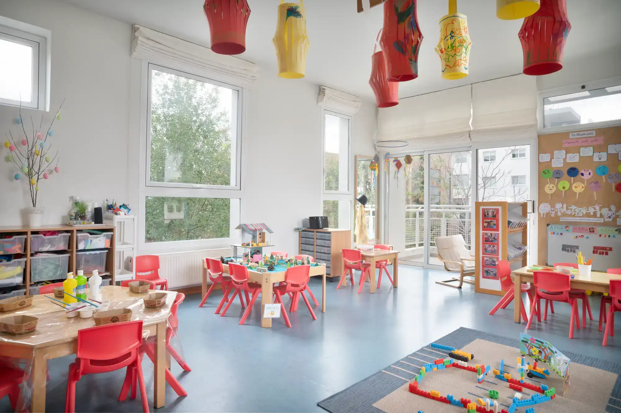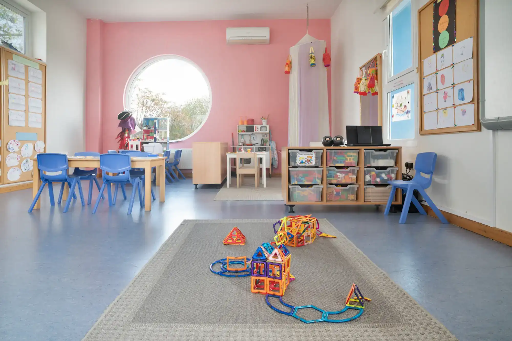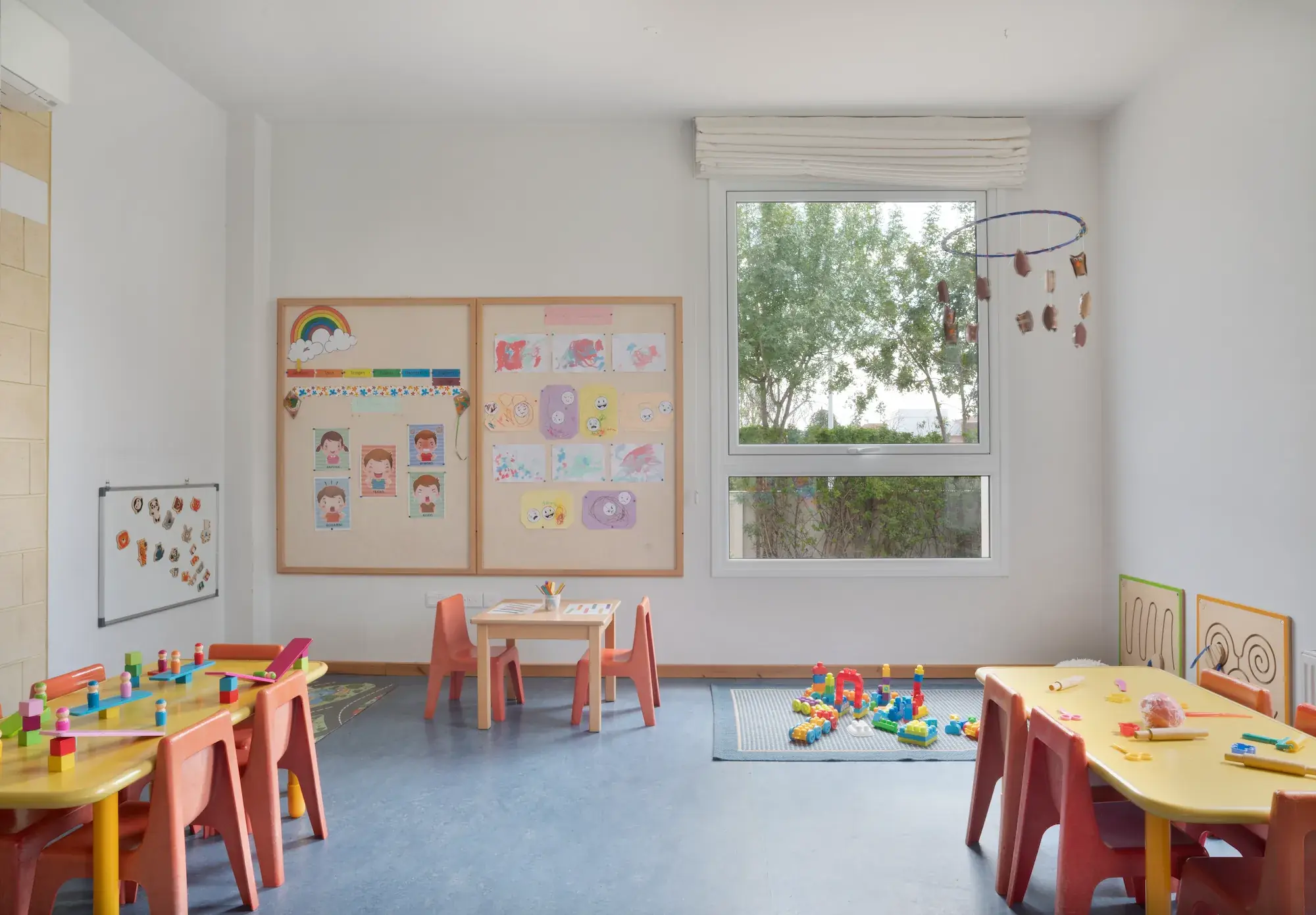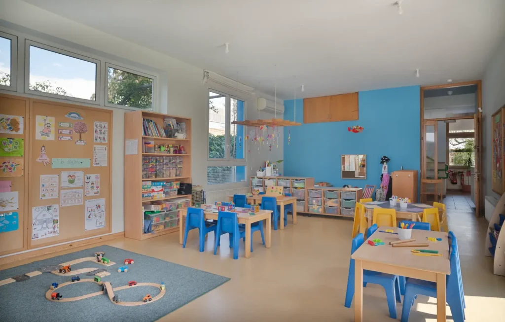 Οι τάξεις είναι οργανωμένες σε ‘’γωνιές’’ (κουκλόσπιτο, μπακάλικο, βιβλιοθήκη, γωνιά μεταμφίεσης, κουκλοθέατρο), οι οποίες μεταμορφώνονται ανάλογα με το θέμα της εβδομάδας. Στην τάξη της Προδημοτικής (ομάδα παιδιών 5-6 χρονών) υπάρχει επίσης διαδραστικός πίνακας, τον οποίο χρησιμοποιούν όλες οι ομάδες εκ περιτροπής. Το υλικό κάθε τάξης (κατασκευαστικά παιχνίδια, παιδαγωγικά παιχνίδια συμπεριλαμβανομένου παζλ, ασκήσεις κ.ά., υλικό φανταστικού παιχνιδιού κλπ) είναι ανάλογο με τις ικανότητες αλλά και τις ανάγκες κάθε ηλικίας.